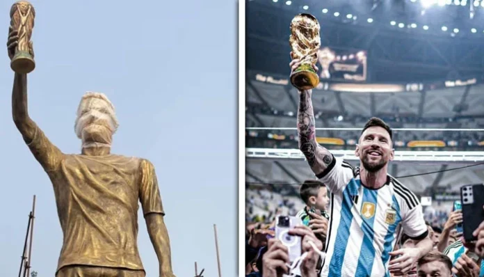 بھارت میں فٹبال اسٹار لیونل میسی کے اعزاز میں 70 فٹ بلند مجسمہ تیار کر لیا گیا ہے، جو انہیں فیفا ورلڈکپ ٹرافی اٹھائے دکھاتا ہے۔ یہ مجسمہ 45 افراد کی ٹیم نے 27 دن کی محنت سے کلکتہ کے سری بھومی اسپورٹنگ کلب میں مکمل کیا۔