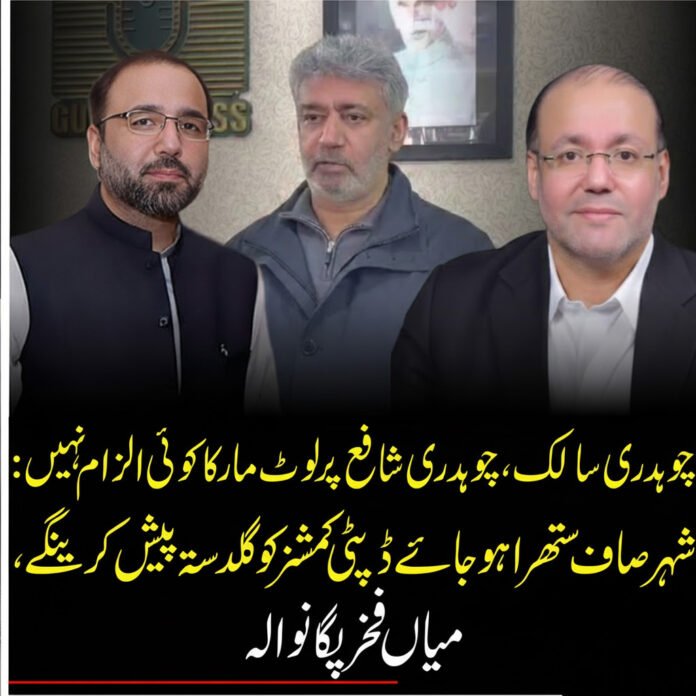 میاں فخر پگانوالہ نے واضح کیا ہے کہ چوہدری سالک اور چوہدری شافع پر لوٹ مار یا بدعنوانی کا کوئی الزام ثابت نہیں ہوا۔ ان کا کہنا تھا کہ بعض عناصر بلاوجہ سیاسی کرداروں کو تنقید کا نشانہ بنا رہے ہیں، جبکہ حقیقت اس کے برعکس ہے۔ انہوں نے مزید کہا کہ اگر شہر میں صفائی اور انتظامی بہتری کا عمل مؤثر انداز میں مکمل کیا گیا تو ڈپٹی کمشنر کو عوامی سطح پر گلدستہ پیش کر کے ان کی کارکردگی کو سراہا جائے گا۔ میاں فخر پگانوالہ کے اس بیان کو مقامی سیاسی حلقوں میں خاص اہمیت دی جا رہی ہے۔